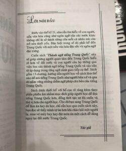 Cuốn sách " Thành ngữ tiếng Trung Quốc" này sẽ giúp những người quan tâm đến Trung Quốc hiểu rõ hơn về đất nước và con người của họ thông qua việc học các thành ngữ tiếng Trung Quốc và các câu từ áp dụng trong từng ngữ cảnh giao tiếp cụ thể. Sách gồm 13 chương, hướng dẫn người học về cách làm thế nào để nói tiếng Trung Quốc như người bản xứ và qua đó nắm vững những điểm ngữ pháp căn bản của tiếng Trung Quốc.