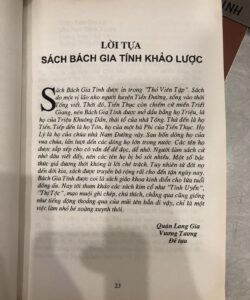 Đây là thể thơ vần 8 chữ. Thứ tự không xếp theo sự phổ biến của từng họ, mà theo như học giả đời Tống Vương Minh Thanh (王明清), các họ đầu tiên được nói tới trong danh sách là họ của các gia tộc quan trọng của triều đình phong kiến lúc đó, trước hết là Triệu (趙) - họ của các hoàng đế nhà Tống, sau đó là Tiền (錢) - họ của các vua nước Ngô Việt, Tôn (孫) - họ của chính phi Ngô Việt vương và Lý (李) - họ của các vua nước Nam Đường. Bốn họ tiếp theo sau đó - Chu (周), Ngô (吳), Trịnh (鄭), Vương (王) - là họ bốn người vợ khác của Tiền Thục, vua Ngô Việt cuối cùng.