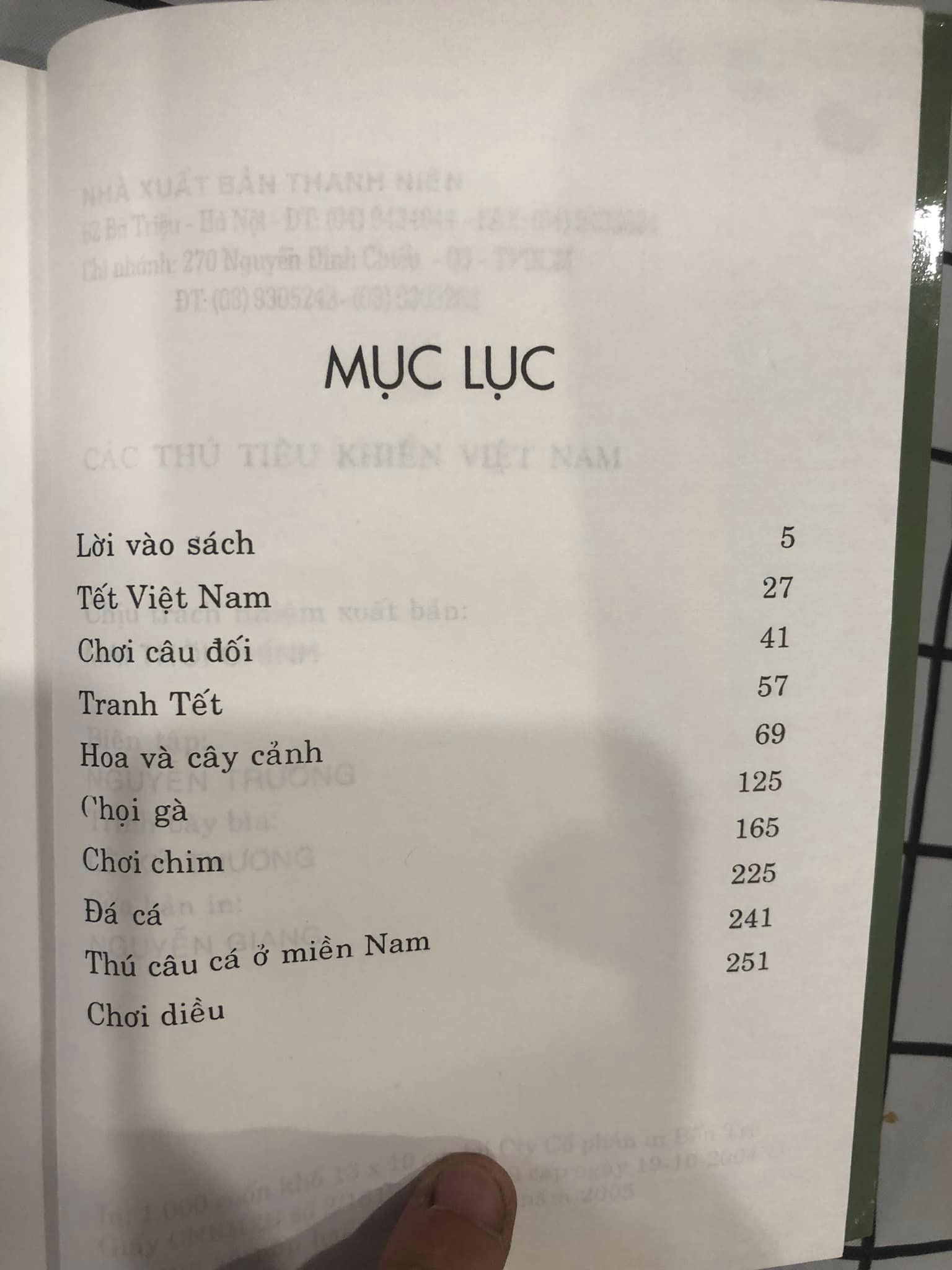 Để giúp mọi người giải trí, mỗi dân tộc đều có những thú tiêu khiển riêng mang rất nhiều địa phương tính, phù hợp với nếp sống của mỗi dân tộc, và ngay giữa một dân tộc, trong một quốc gia, mỗi thú tiêu khiển lại có đặc tính phù hợp với từng vùng. Ngoài những thú tiêu khiển nhập nội đã được Việt Nam hoá chỉ là số ít, dân tộc ta có rất nhiều thú tiêu khiển riêng và đây mới là đa số. Tất cả mọi thú tiêu khiển nguyên thuỷ Việt Nam hoặc của ngoại quốc đã được Việt Nam hoá thay đổi tuỳ theo địa phương và cũng tuỳ theo hoàn cảnh với nhiều yếu tố khác nhau. Mục Lục: Lời vào sách Tết Việt Nam Chơi câu đối Tranh Tết Hoa và cây cảnh Chọi gà Chơi chim Đá cá Thú câu cá ỡ miền Nam Chơi diều Mời bạn đón đọc.