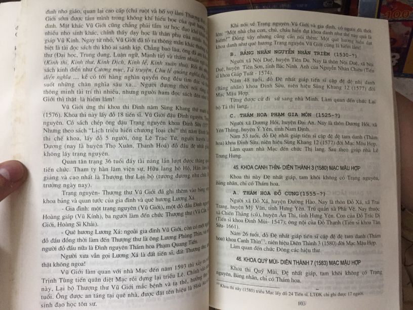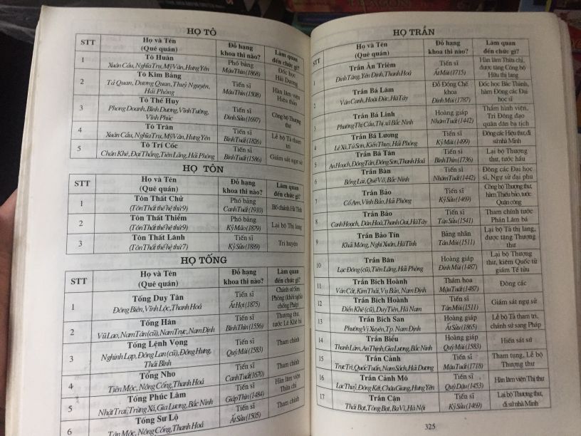 Các vị trạng nguyên, bảng nhãn, thám hoa Việt Nam – Trần Hồng Đức, hội khoa học lịch sử Việt Nam, in 800c năm 2002, sách biên soạn công phu, chia theo khoá thi các vương triều và chia theo dòng họ có người đỗ đạt các danh hiệu.