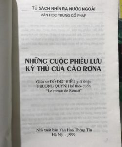 Có rất nhiều mẩu chuyện về cáo Renard của các tác giả khuyết danh được lưu truyền từ thời Trung cổ và được tập hợp lại thành tiểu thuyết dưói dạng thơ từ thế kỷ XII-XIII, vói tổng cộng đến 80 nghìn câu thơ, chia thành 30 truyện nhỏ. Các nhà văn sau đó có viết lại nhiều lần, tạo nên nhiều phiên bản khác nhau, trong đó có phiên bản “Reineker Fuchs” của đại thi hào người Đức Johann Wolfgang von Goethe xuất bản năm 1794 Trong các phiên bản khác nhau từ trước đến nay, phiên bản của nhà văn Jeanne Leroy-Allais và họa sĩ nổi tiếng Benjamin Rabier mà chúng tôi dịch ra tiếng Việt đặc biệt thú vị ỏ chỗ nó tương đối đầy đủ (24 chương) cùng hơn 300 tranh minh họa rất đẹp, hấp dẫn vói cả trẻ em và ngưòi lớn. Bối cảnh của truyện là châu Âu thòi Trung cổ, vói những người nông dân và những con thú như: vua sư tử Noble, chó sói Ysengrin, gấu Brun, mèo Tybert, gà trống Chanteclair quạ Tiercelin, v.v... Mỗi con vật đều có tính cách đặc trưng của nó. Tính cách của cáo Renard là rất mưu mẹo, luôn nghĩ ra các trò để chế nhạo hoặc lừa phỉnh những ngưòi nông dân và các con vật khác, tuy nó cũng bị lừa lại và bị những kẻ to khỏe hơn như là chó sói đối xử tệ. Đây là truyện thích hợp cho trẻ em, nhưng “Những chuyện phiêu lưu của cáo Rơ-na” chứa đựng rất nhiều triết lý sâu xa cho cả ngưòi lớn, và câu chuyện về thế giới loài vật trong truyện chính là câu chuyện ngụ ngôn về giới loài người. Xin trân trọng giói thiệu cùng bạn đọc viên ngọc quý báu này của kho tàng văn học dân gian thế giới.Cuộc phiêu lưu kỳ thú của các Rơ na