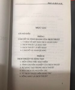 Phần thứ hai: Dịch thuật và sáng tạo, bàn về những khía cạnh kỹ thuật của nghề dịch và mối quan hệ của dịch thuật với sáng tác.