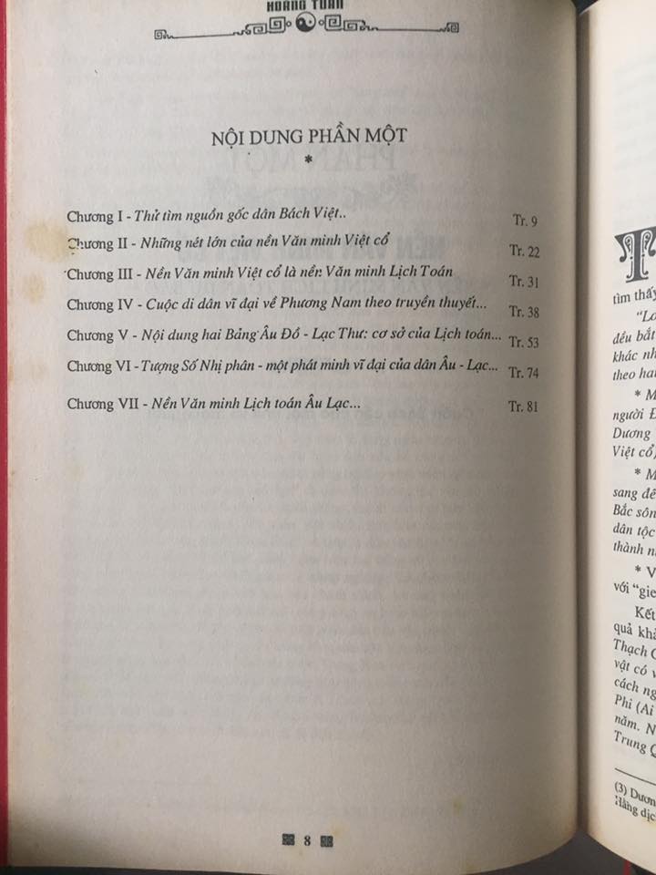 Phần đầu tiên : Nền văn minh lịch toán đã đem đến cho người đọc sự tò mò về nguồn gốc của chính tổ tiên mình, về những nét rất mới trong văn hóa của người Việt cổ lúc bấy giờ. Gia đình, họ hàng, tín ngưỡng và cách tổ chức xã hội. Đồng thời, sự phát triển lịch sử Văn Lang cũng đã khẳng định những bước đầu phát triển của nền văn minh lịch toán. Có thể nói, lịch toán đã góp một phần không nhỏ trong nền văn hóa của người Việt cổ xưa.