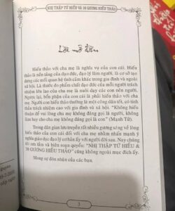 Cuốn sách Nhị Thập Tứ Hiếu & 38 Gương Hiếu Thảo giới thiếu những tấm gương sáng về lòng hiếu thảo của con cái đối với cha mẹ nhằm nhấn mạnh ý nghĩa giáo dục "làm con phải hiếu" cho người đời sau.