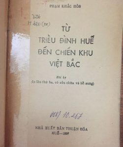 Từ triều đình Huế đến chiến khu Việt Bắc - Hồi ký cụ Phạm Khắc Hoè. Đây là cuốn sách đặc biệt về cách mạng của 1 vị quan triều phong kiến tới khi giác ngộ theo Đảng và trở thành người có đóng góp lớn cho Đảng và cách mạng. Một cuốn sách quý, in lần đầu từ năm 1983.